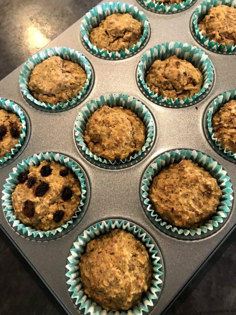 A little note about the recipe, it really is worth hand grating the apple and carrots with a box grater, as an electric one won’t create such fine grating and it can then make the muffins a bit chewy.