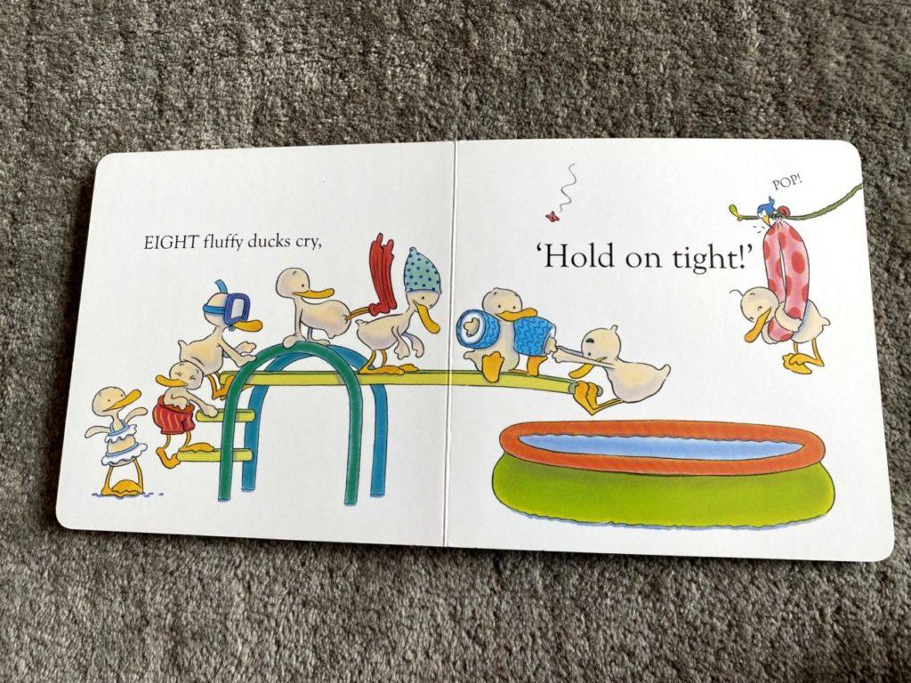This is a delightful counting book about a little duck called SLOSH and his friends getting into a paddling pool. It counts from one to ten while telling a funny little story that makes my two giggle every time.