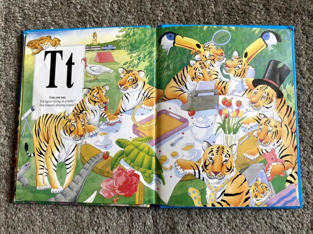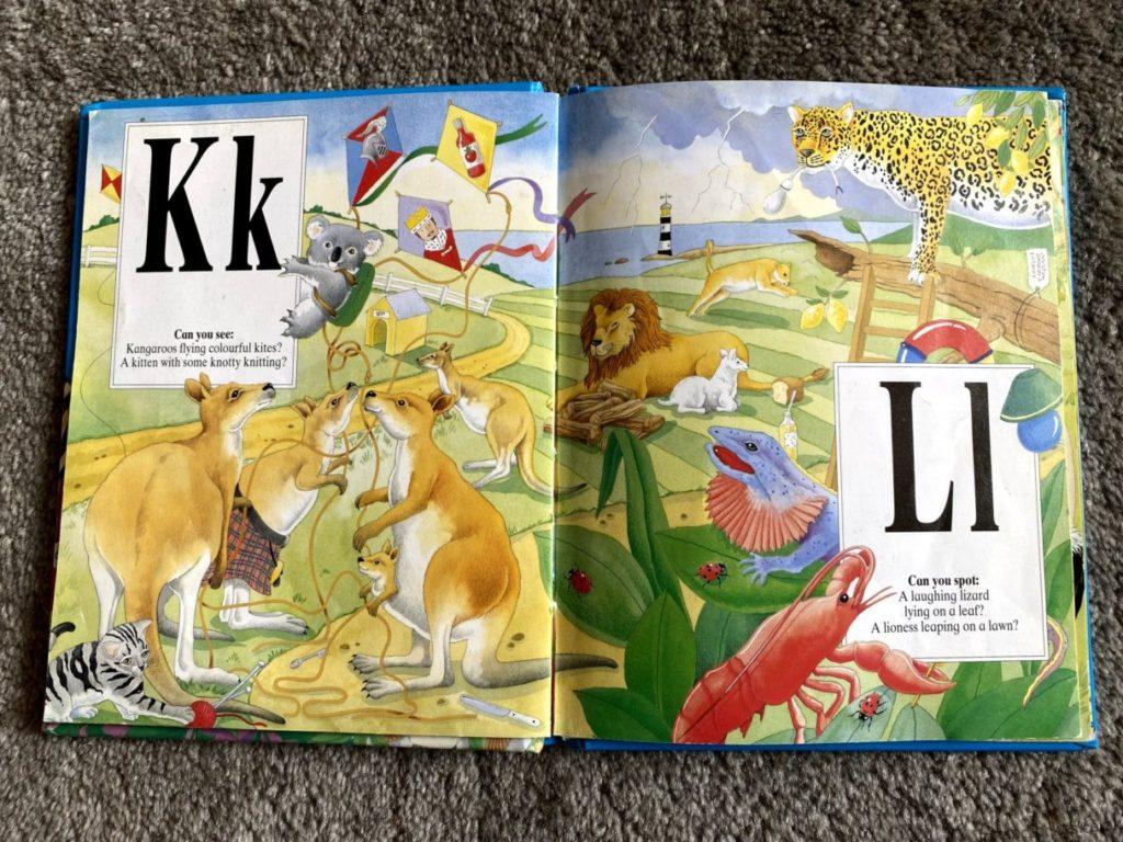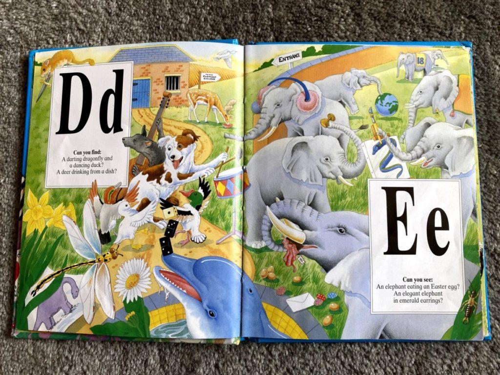 This is one of the most beautifully illustrated books we own. Brother Bear adores animals and this book and the stunning paintings in it is the one he chooses to come back to time and again to look at. While he’s looking I simply say the sound of the letter on the page while pointing at it and then we talk about the animal. He’s way more interested in the animals, as he should be at two, but is also slowly picking up his letters along the way.