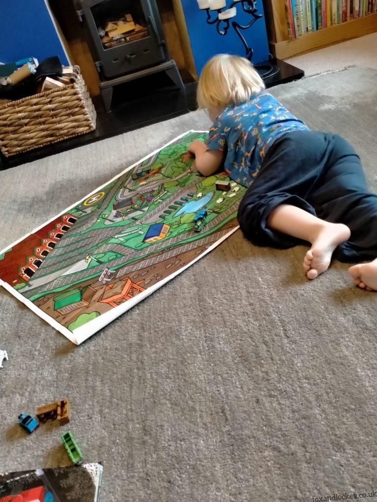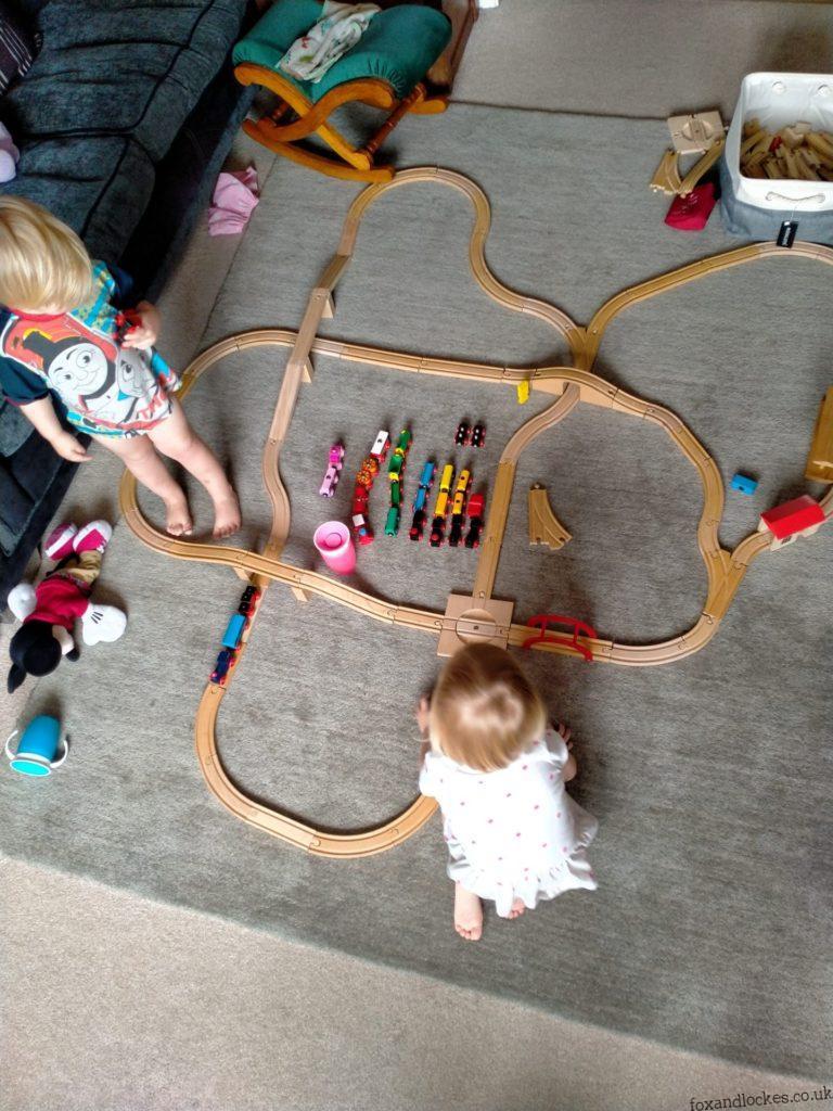 From that pile I chose a mix of toys that my children love and play with well; both together and individually. Some of them were open-ended toys like the railway track, Duplo, tea set, and plastic animals but some were also ‘closed’ toys like their Robin Hood or Paw Patrol toys.